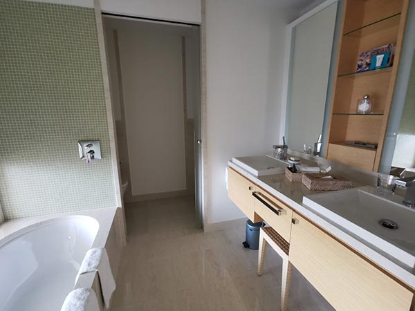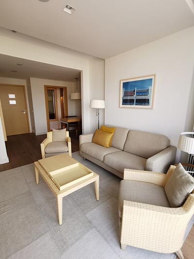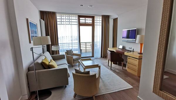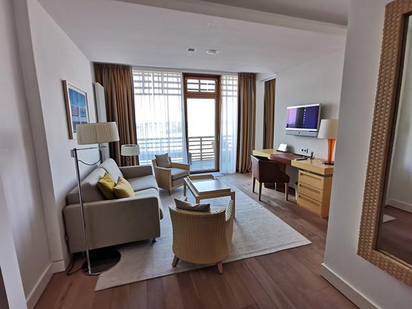 Nos suites junior luxueuses et spacieuses de trois tailles différentes (env. 42 m² / 46 m² / 55 m²) avec un mobilier différent et de belles vues différentes sont idéales pour un séjour plus long. Un balcon spacieux vous invite à vous attarder. Qu`il s`agisse d`une petite suite junior avec vue sur la mer et le parcours de golf ou d`une grande suite junior avec vue directe sur la mer, toutes les suites junior disposent d`un salon et d`une chambre séparables avec un canapé confortable avec fonction lit ainsi qu`une douche à effet pluie et baignoire séparée dans la salle de bain. Certaines de nos suites junior d`environ 55 m² sont équipées d`une kitchenette et d`une grande table à manger dans le salon et certaines ont un grand dressing et un bidet supplémentaire dans la salle de bain.