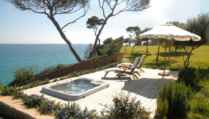• Jacuzzi extérieure située directement sur la falaise avec vue de mer panoramique.
