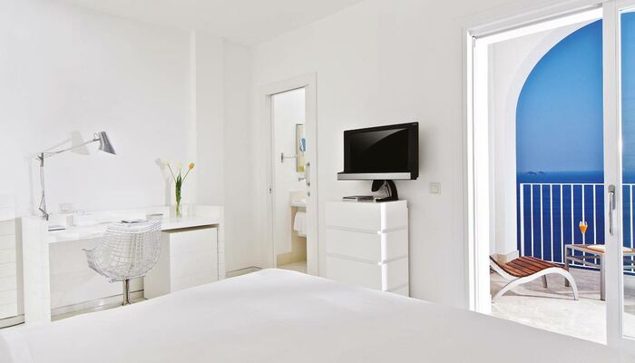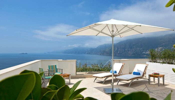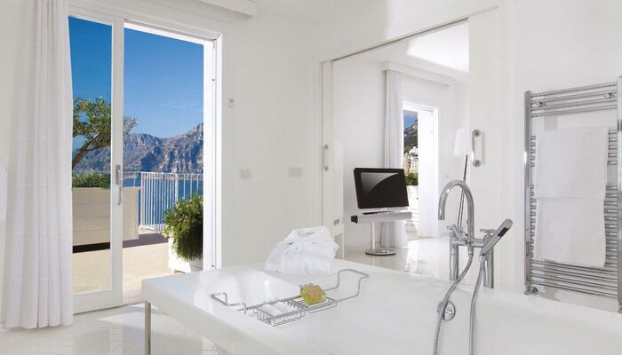 Nos Chambres Relaxing sont spacieuses et font une superficie de 26 m2. Elles offrent des vues directes sur la mer et sont idéales pour se détendre. Chacune de ces chambres dispose dun grand balcon de 10 m2, meublé de chaises longues ou de transats, ainsi que dune table et de chaises pour simprégner des vues sur la pittoresque Positano et le littoral bordé de falaises, tout en sirotant un cocktail rafraîchissant. A lintérieur, la chambre est une vision de la perfection blanc-sur-blanc, avec une palette de couleurs minimaliste pour véritablement souligner les couleurs de pierres précieuses du Golfe de Salerne et des sommets habillés de forêts visibles de lextérieur. Les chambres Relaxing sont équipées dun lit king-size, dune machine Nespresso, dune télévision à écran plat, dune station iPod, du Wi-Fi gratuit et dun petit ordinateur portable à la disposition des invités, ainsi que dune baignoire et dune douche, avec les toilettes et un bidet séparés.