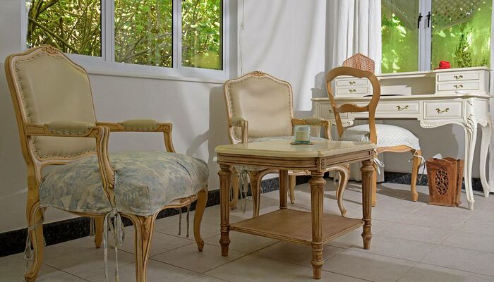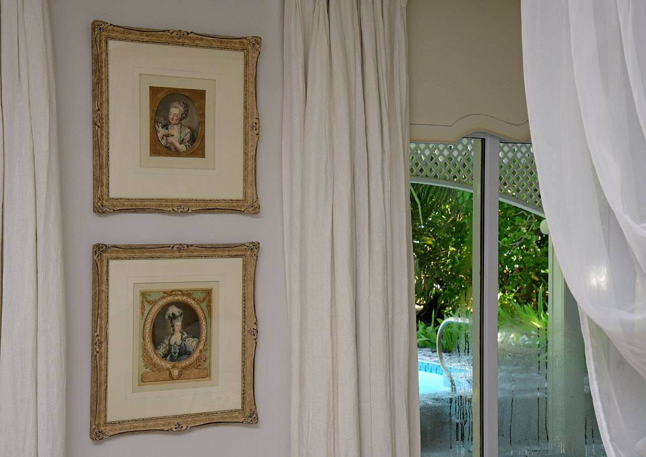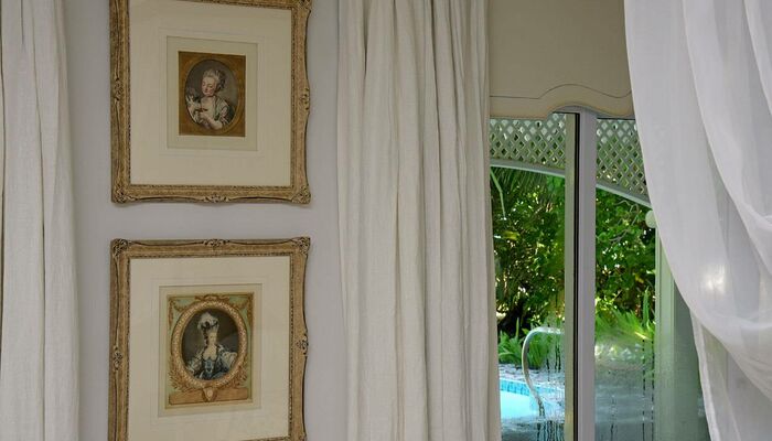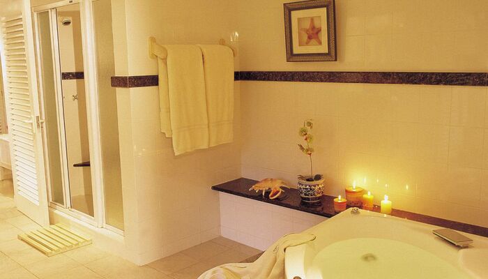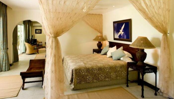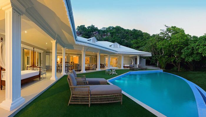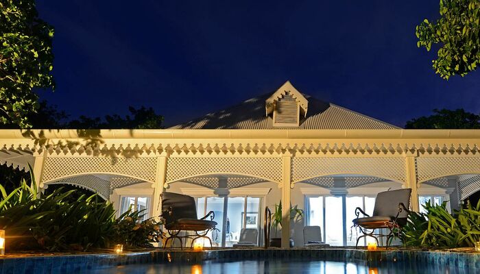 Les villas de luxe d‘inspiration coloniale française ont des réceptions donnant sur un salon ouvert et salle à manger et des chambres vastes donnant directement sur la plage angélique blanc offre des vues magnifiques sur le lever du soleil. Les salles de bains spacieuses avec salle de bains sont composées de deux douches et lavabos, baignoires jacuzzi et des toilettes fermées ainsi qu‘une véranda avant et arrière et des douches extérieures. Le prix de chaque Villa de luxe permet la capacité maximale de 2 adultes.