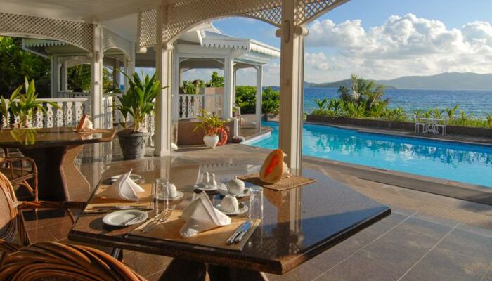 Profitez de la vue spectaculaire sur l‘océan et les îles voisines du cadre panoramique du pavillon, le centre colonial français de l‘île pour les événements sociaux. Conçu pour évoquer les riches souvenirs du passé des Seychelles, niché et imbu de l‘ambiance romantique, le Pavillon vous suspend dans des vues inoubliables et exquis de la mer turquoise et la végétation luxuriante des îles environnantes. Détendez-vous dans la salle à manger et un salon en plein air, et de trouver un peu de tranquillité perdu dans le cadre paisible de la bibliothèque privée ou rafraîchir et célébrer la vie au bar Gecko. Faites un plongeon dans la piscine d‘eau douce, ou l‘expérience créole unique et savoureux, plats asiatiques et occidentaux, préparés avec amour et passion par notre chef extraordinaire.