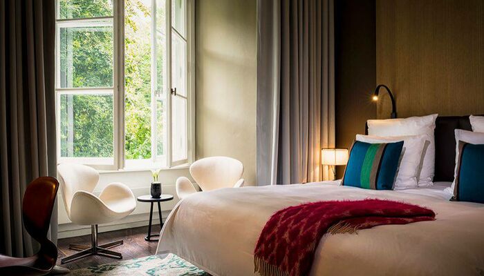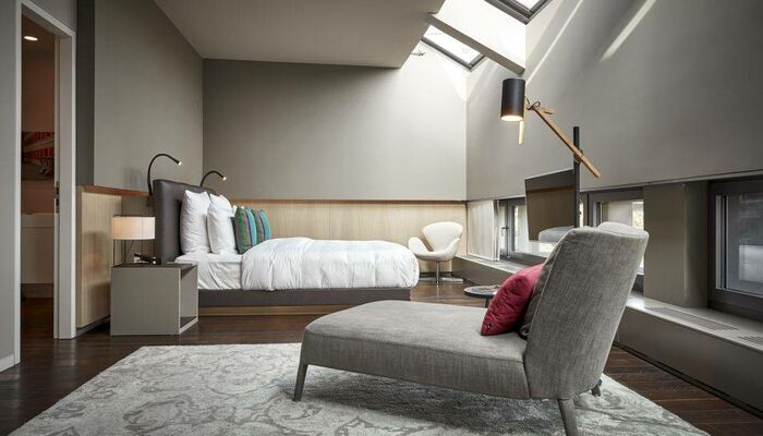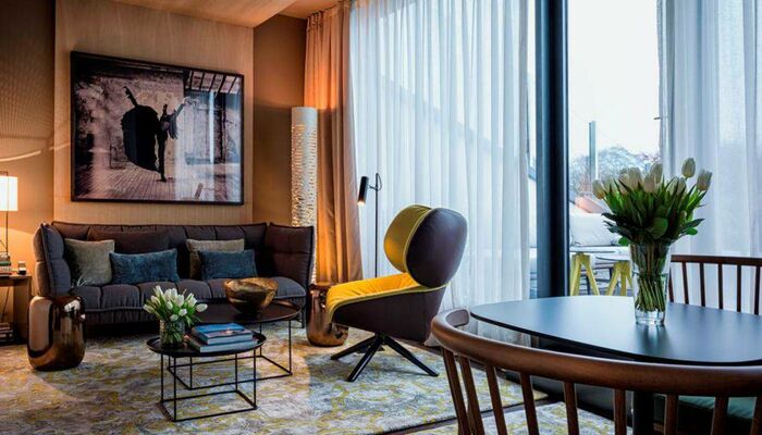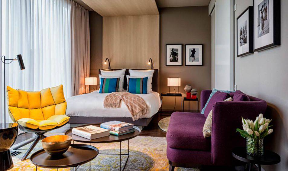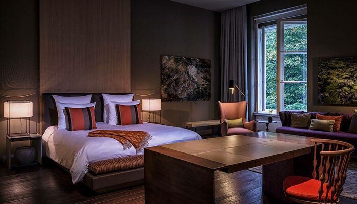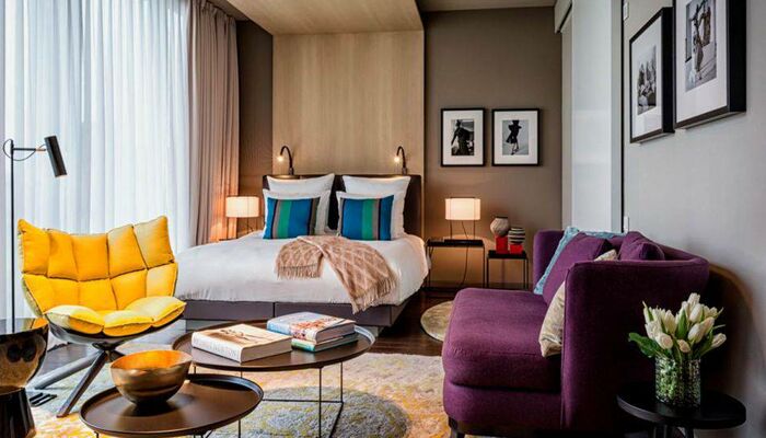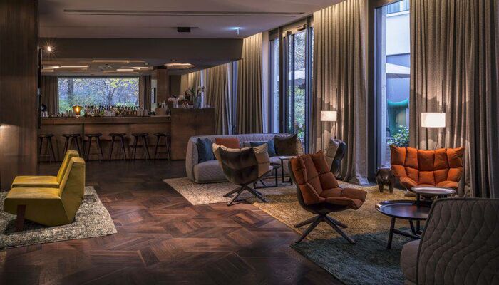 Nos chambres et suites modernes présentent un décor personnalisé alliant mobilier unique et touches de couleur. Les baies vitrées panoramiques offrent une vue qui stimulera votre créativité. Profitez de la grande douche à effet pluie pour vous détendre. Dotées d'un haut plafond de cinq mètres et d'une baignoire sur pieds, les suites Stue de 70 m² sont ornées de matériaux précieux et évoquent l'ambiance d'une villa urbaine raffinée. Notre suite Penthouse de 80 m² offre une vue imprenable sur le zoo.