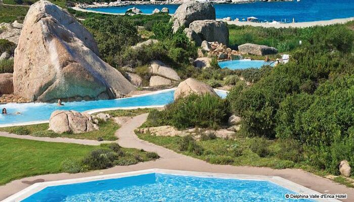 Valle dell Erica se trouve au nord de Palau, aux confins du Parc National de l Archipel de La Maddalena et juste en face de la charmante île inhabitée de Spargi. À 4 km du petit bourg de Porto Pozzo, de son port de plaisance et de ses commerces, et à 12 km de S. Teresa Gallura, célèbre zone touristique du nord de la Sardaigne sur les Bouches de Bonifacio. La partie la plus ancienne du Resort Valle dell Erica fut le tout premier village touristique en Sardaigne; créé en 1958 (quand construire à quelques mètres de la mer était encore possible) par le propriétaire de la vallée, un pionnier du tourisme sarde. La beauté des lieux et la qualité de l infrastructure hôtelière lui ont valu une reconnaissance de la part du Président de la République. Dans les années 60, Valle dell Erica devint une localité très en vogue , fréquentée par les célébrités et la haute société. En 2005, le complexe a été complètement rénové par Delphina dans le plus grand respect de la nature environnante et en parfaite harmonie avec le concept originel du village élaboré par son fondateur. Le Resort est doté de tout le confort nécessaire pour des vacances authentiques et exclusives.