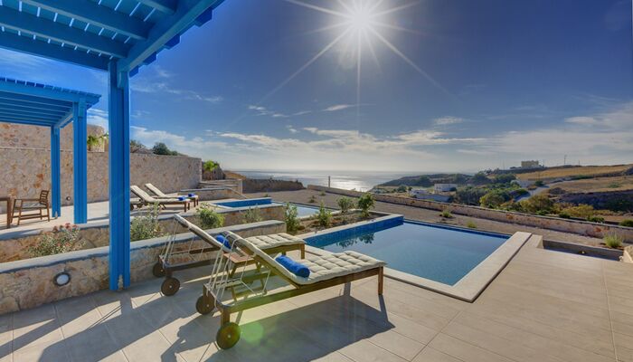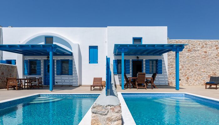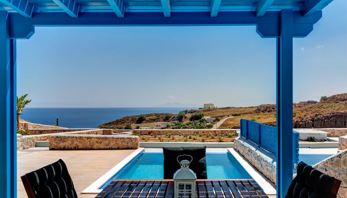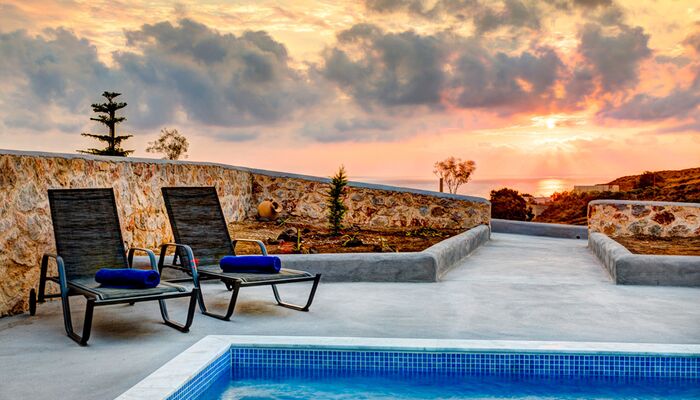 Les suites de luxe Desiterra sont des villas bioclimatiques entièrement autonomes avec une terrasse privée et une piscine, où nos clients ont l‘occasion de contempler le bleu profond de la mer Égée, dans une propriété de rêve bénéficiant des services les plus luxueux. Dans une zone spacieuse de 55 m² à 100 m² combiné avec un extérieur de 50 m² - 100 m² zone couverte, chaque villa a la capacité d‘accueillir 2 à 6 personnes, ce qui le rend idéal pour les amis, les familles, les couples et les groupes d‘amis. Un espace de stationnement et un service de conciergerie 24h sont également disponibles pour faciliter les invités.