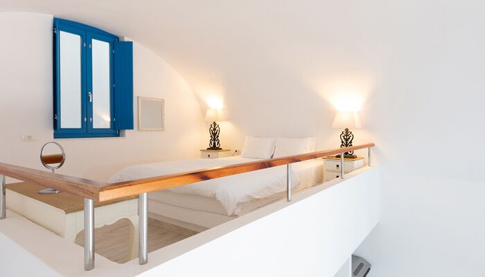 2,5 km de la célèbre Caldera, au village de Fira, avec la fabuleuse vue sur le volcan (5 min en voiture, 30 min à pied)