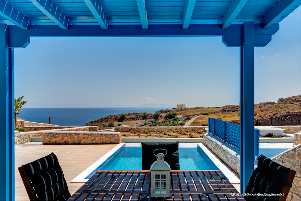 Les suites Desiterra sont des villas bioclimatiques entièrement autonomes avec une terrasse et une piscine privées. Bois, roche, eau et verre sont les quatre natures que vous trouverez dans nos suites. Un mélange de meubles de style campagnard dans les tons de terre et les couleurs pâles, comme le blanc, beige clair et bleu, avec une touche d‘ornements grecs traditionnels créent un environnement paisible pour votre séjour, en harmonie avec l‘énergie de l‘île et le soleil grec.
