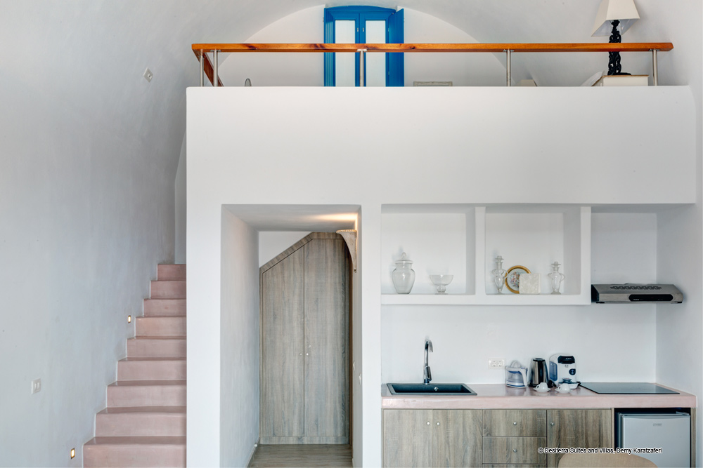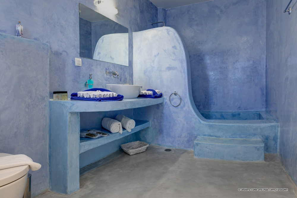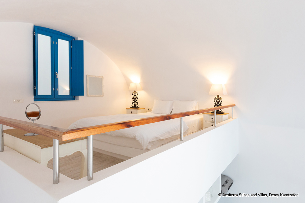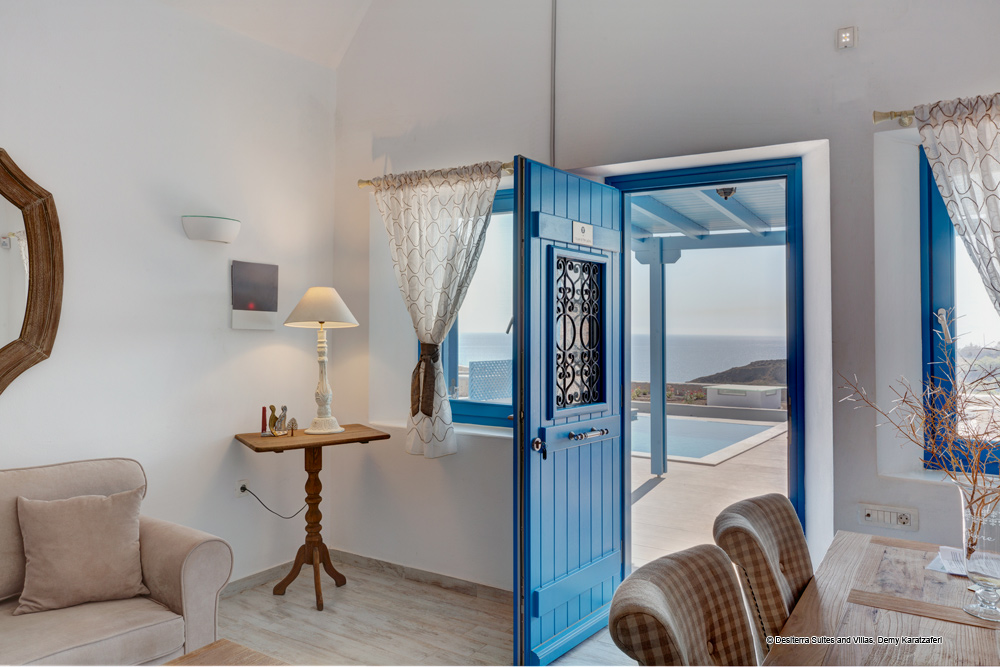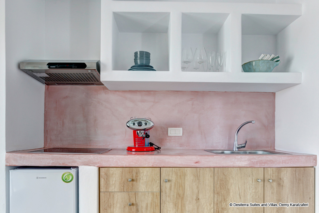 Les suites Desiterra offrent un environnement naturel unique. Les éléments naturels tels que le bois, la pierre, le verre et l‘eau bleue magique de la mer Égée, associés au soleil thérapeutique grec et à l‘énergie unique de l‘île, offrent à tous les visiteurs une véritable expérience de bien-être.