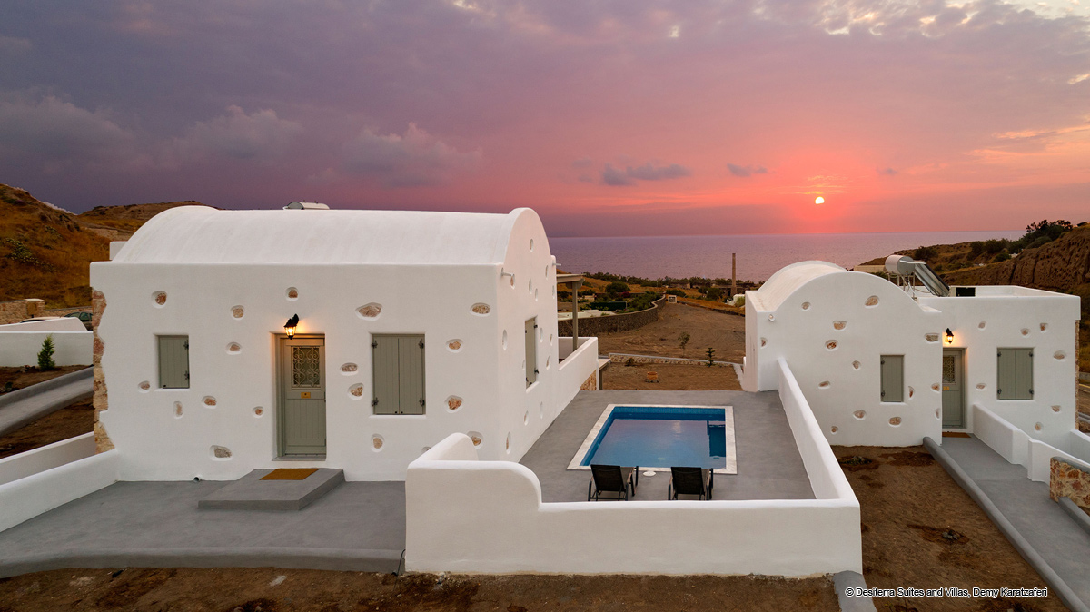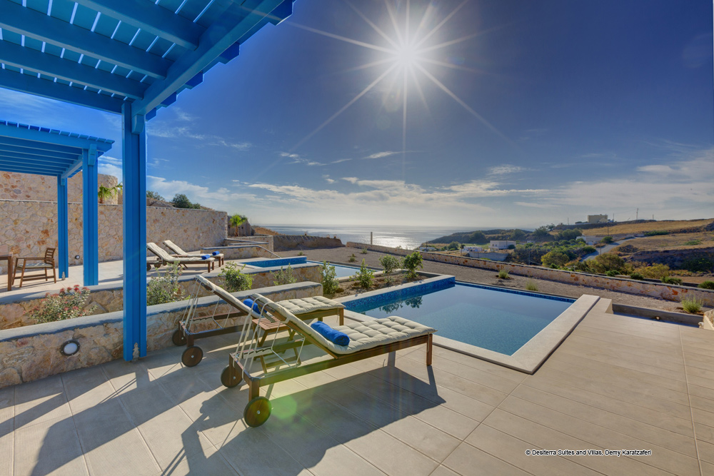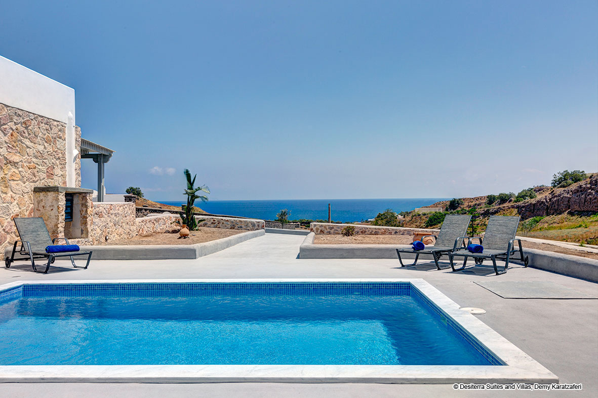 Les suites Desiterra ne sont pas un choix d‘hébergement simple. Fidèle à son nom, c‘est un lieu qui offre une expérience de vacances unique dans un environnement serein avec des services de haute qualité sous la lumière grecque exceptionnelle et la vue magique sur la mer Egée. Des Suites de luxe avec piscine privée et des villas luxe avec pisciné privée.