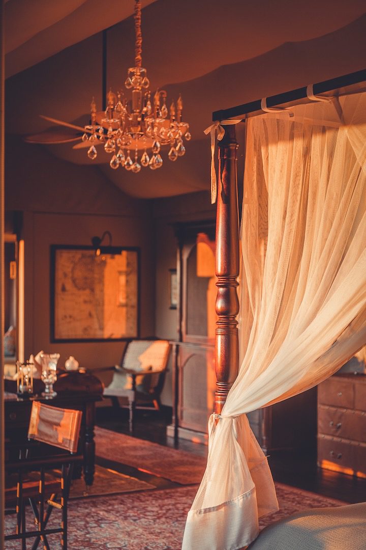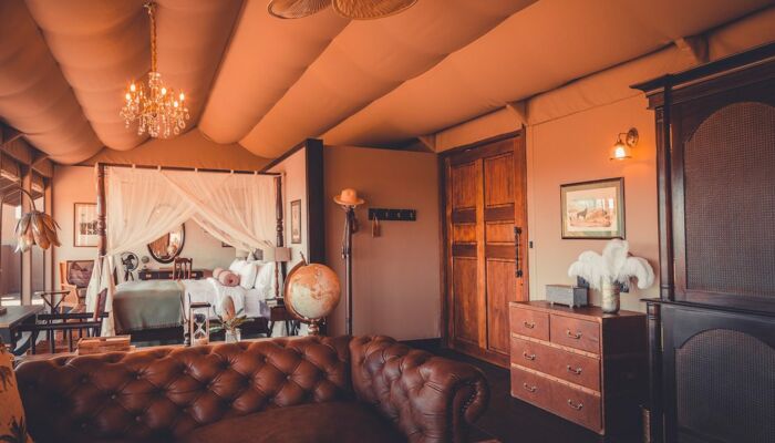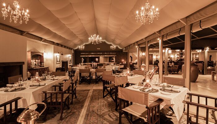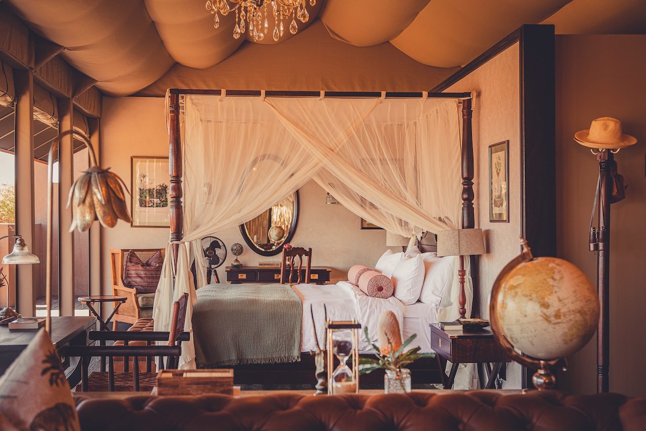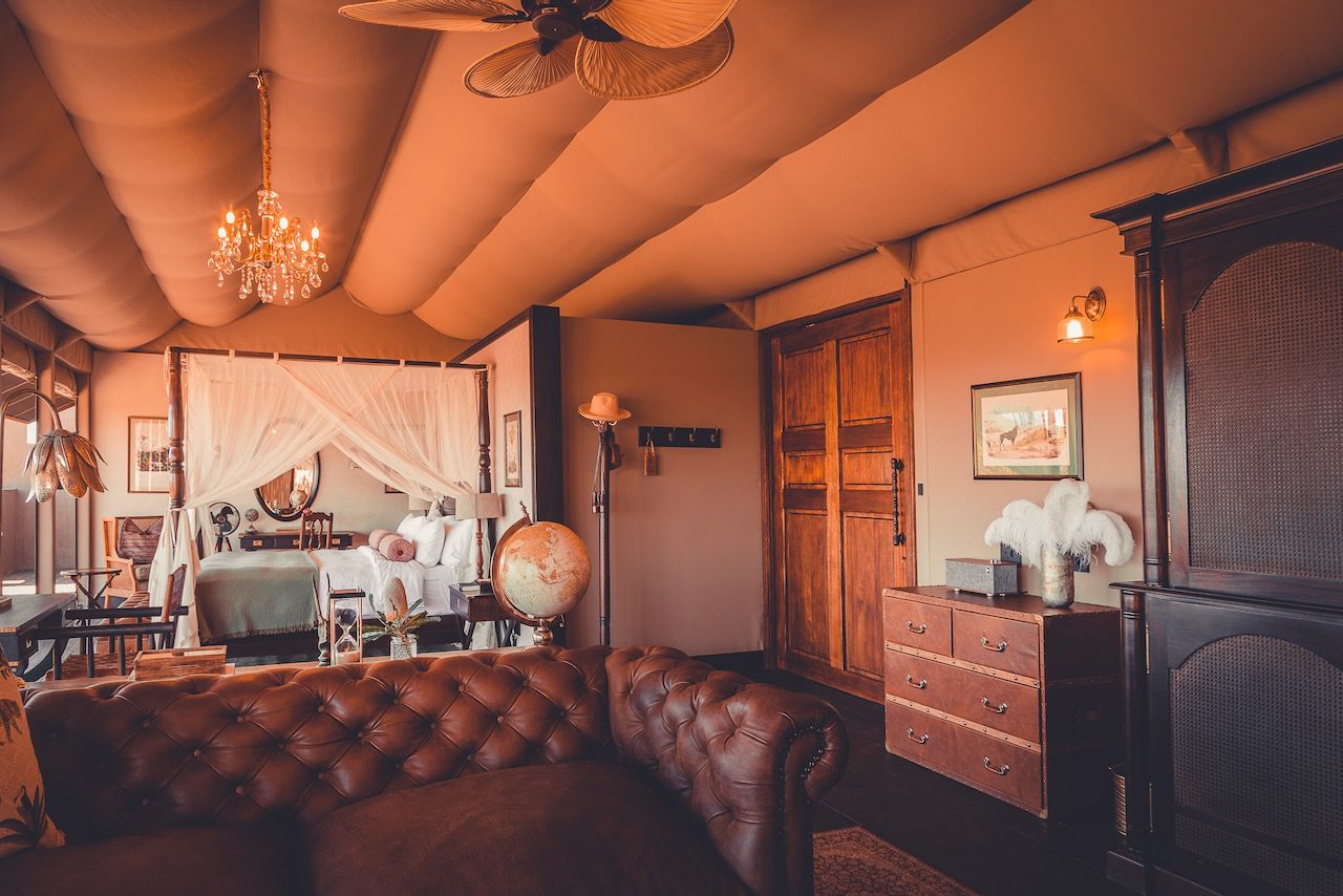Installées en retrait de la tente principale, nos douze suites offrent à nos hôtes une expérience de vie unique. Ses fauteuils en cuir souple, ses meubles en acajou, ses antiquités et ses objets d`art lui confèrent un sentiment d`élégance et de confort. Les chambres sont conçues pour la détente et le plaisir. Chacune des suites indépendantes dispose d`une salle de bain intérieure/extérieure où les hôtes peuvent se laisser enchanter par la magnifique nature sauvage.