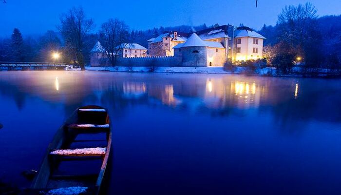 Château d'Otocec au cœur d'un paysage préservé, sur un îlot au milieu de la rivière émeraude Krka, se trouve l'un des hôtels les plus séduisants de Slovénie, l'Otocec Castle Hotel. Membre de l'association prestigieuse des hôtels particuliers et des restaurants, cet hôtel de charme propose des chambres et des suites luxueuses pour les goûts les plus exigeants. Venez vivre l’époque du passé associée à tout le confort moderne.