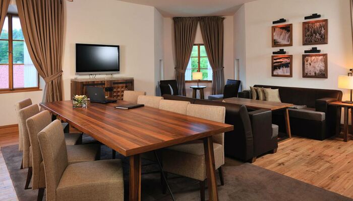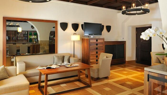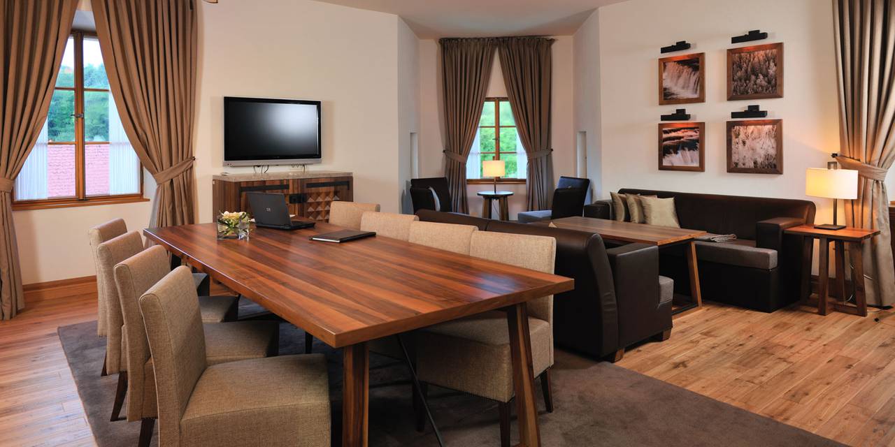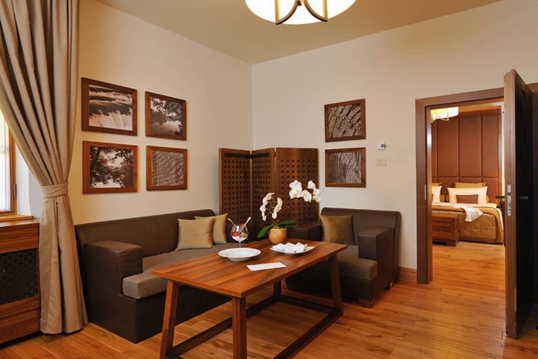 Chacune des deux suites supérieures peut accueillir 3 personnes. Le vestibule de la suite supérieure comprend une salle de réception qui convient également à la presse. La suite senior est parfaite pour les familles. Chacune des deux suites senior dispose de deux chambres séparées avec vue sur la tour du château et le pont en bois sur la rivière Krka. Profitez du confort supérieur de la spacieuse chambre du château avec un grand lit, un divan, une table et des chaises dans la plus grande chambre. L'autre chambre, un peu plus petite, convient aux enfants. La salle de bain Castle avec une grande baignoire d'angle, une douche séparée et deux lavabos offre tout le nécessaire pour une détente totale, vous permettant de recharger vos batteries et de vous préparer à de nouveaux défis. Une suite peut accueillir 4 personnes.