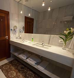 Nos suites sont une tentation pour les amateurs d`espace et de tranquillité. Situé dans le quartier le plus calme de l`hôtel et avec tous les détails de luxe. La suite a deux chambres complètement indépendantes; chambre avec sa salle de bain et son salon. Equipée d`une salle de bains complète avec jacuzzi, douche et sèche-cheveux, connexion Internet gratuite, télévision par satellite, minibar, climatisation individuelle et coffre-fort gratuit.
