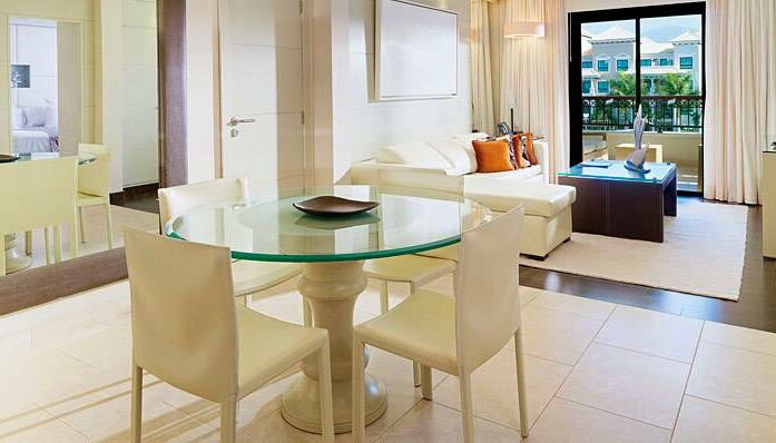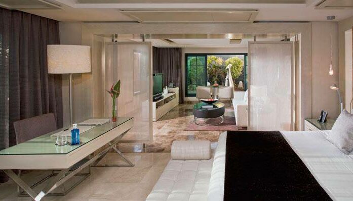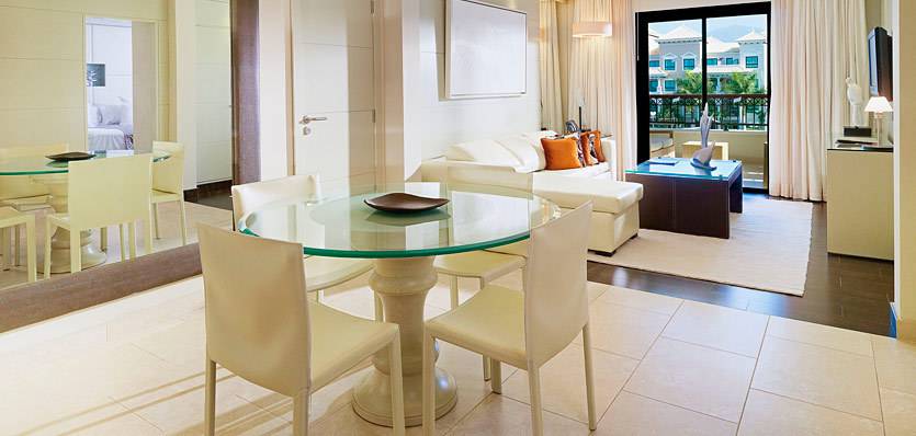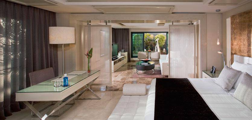 Nos Grand Suites 2 chambres proposent plus d`espace. Avec plus de 116 m2, elles disposent de 2 terrasses ou balcons privés meublés et de 2 chambres séparées avec leur propre salle de bain, l`une d`elles avec baignoire à remous et double douche à effet pluie. Intimité garantie, services et équipements haut de gamme dans l’un des complexes hôteliers les plus demandés d’Europe.
