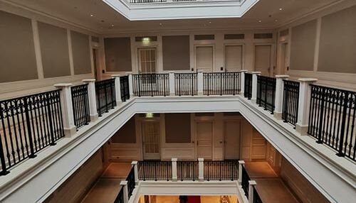 Au Bel Étage, l`étage événementiel du Kurhaus, se trouvent également deux salons plus classiques : le salon de musique et le salon Prof. Dr. Vogel, chacun avec un foyer. Le Salon Alexandrine se distingue notamment par ses baies vitrées des deux côtés avec une vue magnifique sur la mer Baltique et est aménagé comme une salle de réunion classique avec une grande table et d`élégants fauteuils en cuir. Les salons Caroline, Friederike, Louise I & II sont des salles de séminaires et d`événements de première classe avec un design intérieur élégant et calme.