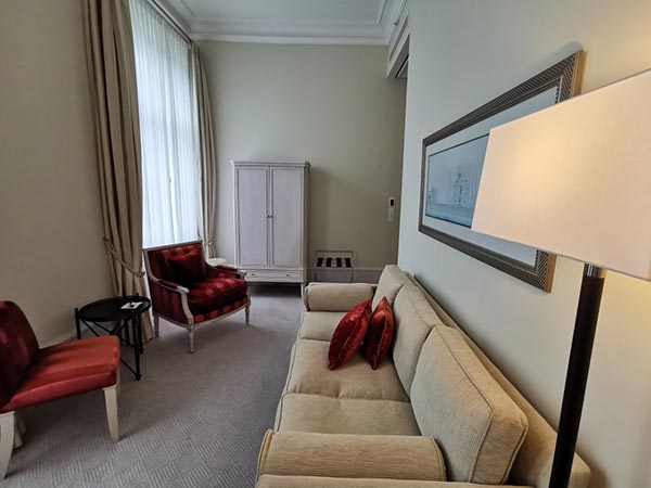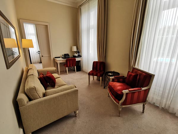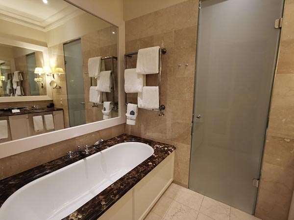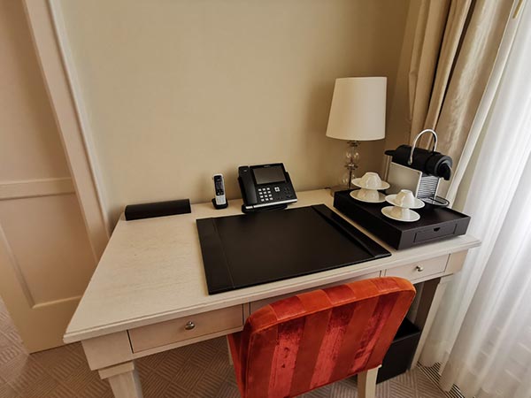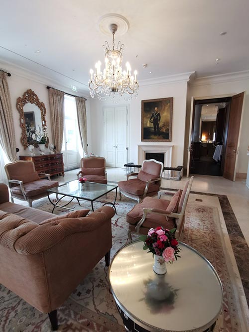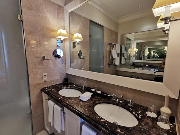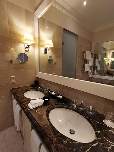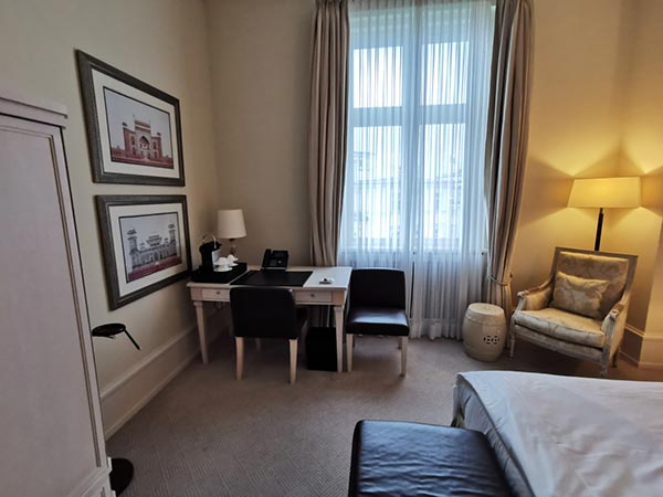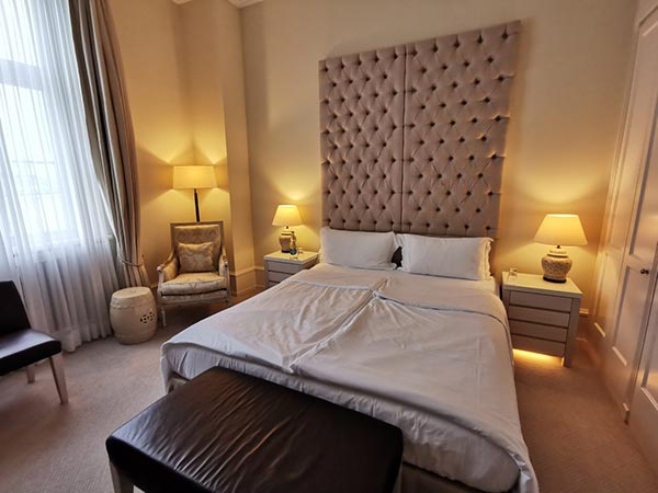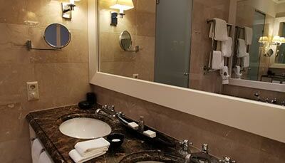 Nos chambres sont équipées d`un lit king size, salle de bain en marbre avec chauffage au sol, douche et baignoire, toilettes, produits d`accueil, miroir cosmétique, sèche-serviettes, sèche-cheveux, connexion ADSL, TV stéréo, lecteur DVD, Sky, téléphone direct , prises fax et PC, climatisation à réglage individuel, coffre-fort, minibar et bureau avec grand plan de travail. Service de couverture quotidien en soirée, ainsi qu`un journal local ou international.