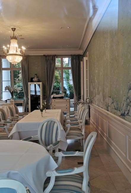 Le Friedrich Franz est situé dans le Kurhaus historique, en plein cœur de la "ville blanche au bord de la mer". Les 10 tables peuvent accueillir un maximum de 26 convives et ont une vue imprenable sur la mer Baltique. Avec ses papiers peints en soie peints à la main et ses lustres, le restaurant gastronomique offre une atmosphère raffinée et unique.