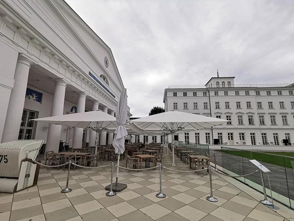 Il y a des endroits dans ce monde qui sont hors de ce monde. Imaginez un endroit où il y a presque tout sauf les rendez-vous, le stress et l`agitation. Cet endroit magique existe - il s`appelle Heiligendamm. Déjà sur le chemin, vous ressentirez une légèreté indescriptible. Vous traversez des allées de tilleuls séculaires et sentez l`air devenir plus salé. Entourée par la mer Baltique et de denses forêts de hêtres, la ville blanche au bord de la mer brille d`une splendeur éclatante. Aujourd`hui, six bâtiments de style classique forment un lieu où le luxe n`est pas le scintillement ni le spectacle, mais plutôt le repos, les loisirs et le temps : Le Grand Hotel Heiligendamm. Le Grand Hotel est situé directement sur la mer Baltique, non loin de Rostock entre Bad Doberan et Kühlungsborn.
