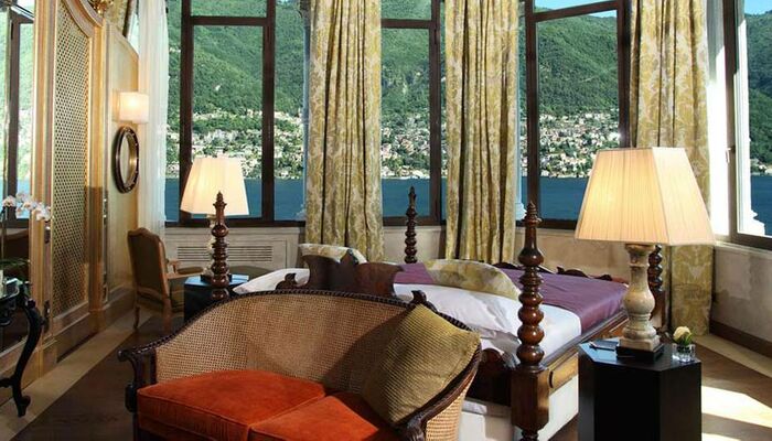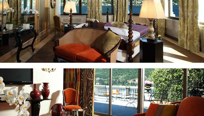 Les chambres de luxe offrent une vue magnifique sur le lac de Côme et peuvent également être appréciées depuis les balcons. Certaines chambres se caractérisent par un mobilier contemporain avec des éléments en or combinés à des couleurs pourpres, brunes et bleues qui créent une atmosphère lumineuse. De 484.20 à 591.80 sq. Ft. Les chambres Deluxe sont situées à la Villa Dorabella.