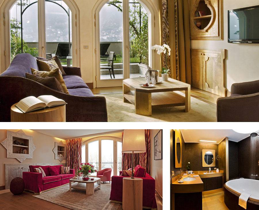Les points forts de l’hôtel Castadiva Suites sont la vue imprenable sur le lac de Côme et leur caractère unique: une grande terrasse, le magnifique pavillon ancien avec des fresques, l’immense suite à deux étages ou le design contemporain.