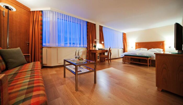 Avez-vous besoin un peu plus d`espace car vos enfants sont avec vous? Cette chambre vous offre la possibilité d`y mettre confortablement un lit supplémentaire ou de connecter avec la chambre adjacente. Ici vous pouvez prendre votre temps en offrant dans le même temps aux petits une retraite après une journée passionnante au Kulm Junior Club.