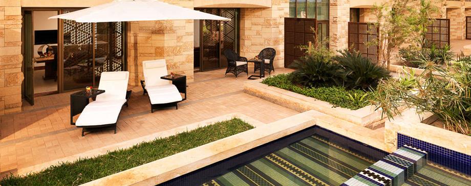 Messilah, dérivé du mot Massiyalah, désigne une zone de basse altitude où les eaux se fondent et coulent dans la mer. Ainsi, inhérent à l‘identité de l‘hôtel, l‘eau peut être trouvée dans tout le design de l‘hôtel. Les caractéristiques de l‘eau coulent du hall central et dans tout le bâtiment pour se connecter aux ruisseaux, aux canaux et aux fontaines situés dans les jardins. L‘eau se reflète également dans une série de sculptures saisissantes et dans le design intérieur de l‘hôtel.