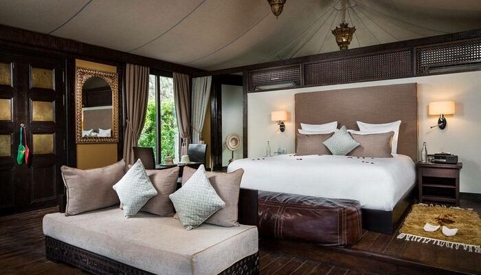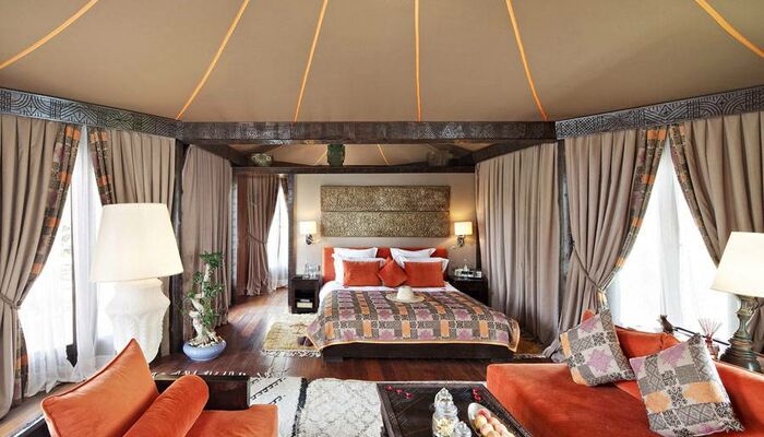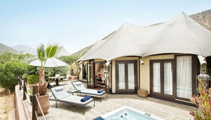 Nos dix luxueuses tentes berbères sont parfaites pour ceux qui recherchent un peu plus d‘aventure. Profitez de la vue sur votre terrasse privée équipée de chaises longues et d‘un espace pour prendre vos repas en plein air. Six suites disposent de leur propre bain à remous. Toutes les suites disposent d‘un lit king-size, d‘une grande baignoire à l‘italienne et vous feront gagner des points brownie supplémentaires si vous emmenez quelqu‘un de spécial pour une escapade romantique!