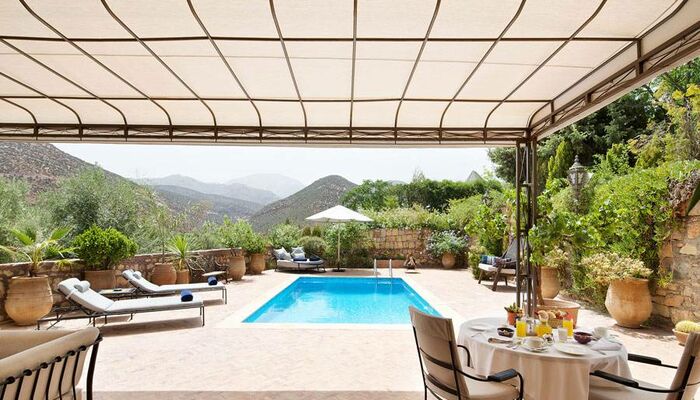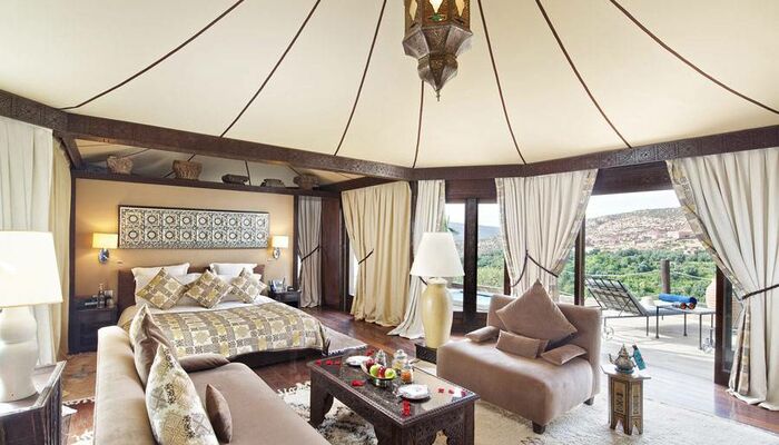 Les suites de luxe occupent des emplacements de choix pour une vue sur la vallée et les montagnes de l‘Atlas. Elles sont de taille similaire aux suites supérieures avec un coin salon décloisonné. Deux des suites peuvent accueillir un lit pliant pour un enfant.