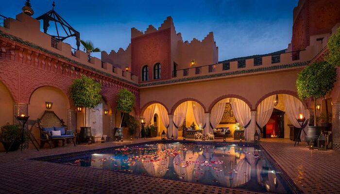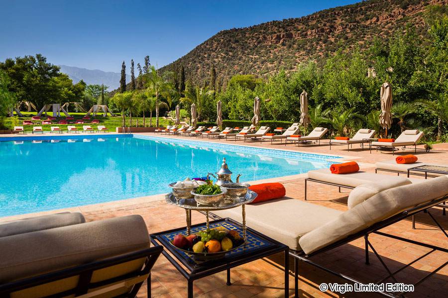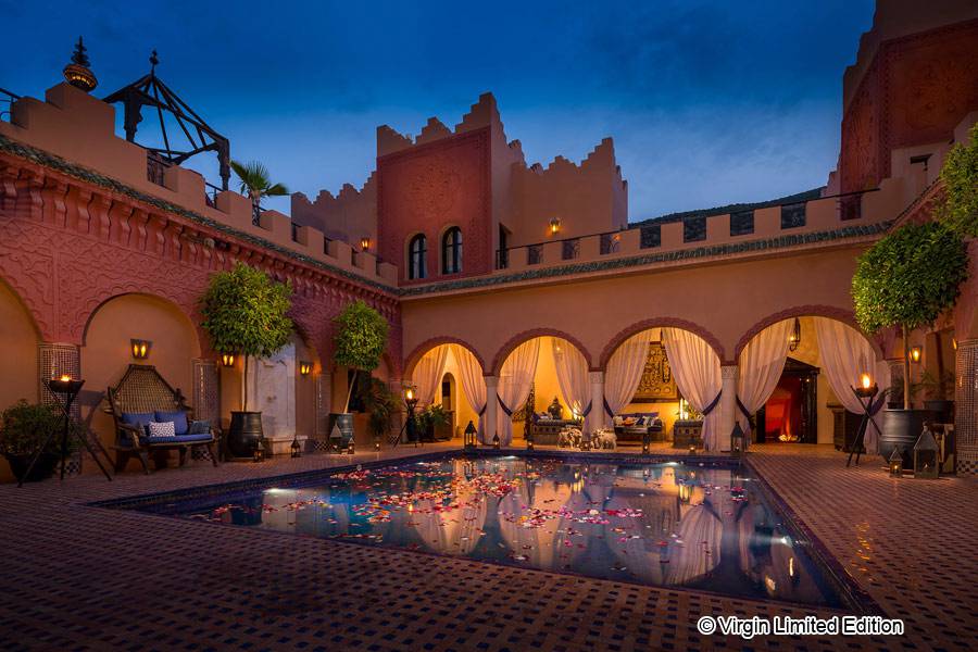 Située dans les spectaculaires montagnes de l’Atlas au Maroc, la Kasbah Tamadot, primée, a été achetée par Sir Richard Branson lors d’une de ses célèbres expéditions en montgolfière. Chacune des 28 chambres et suites a été décorée individuellement pour refléter la belle architecture du bâtiment et présente des antiquités du monde entier.