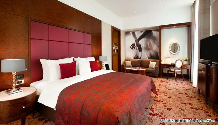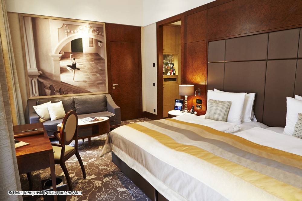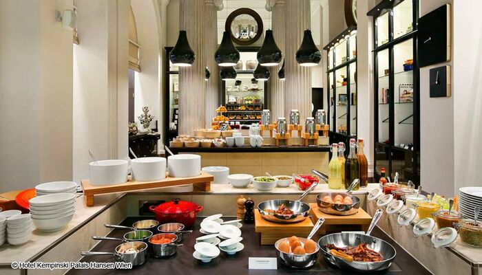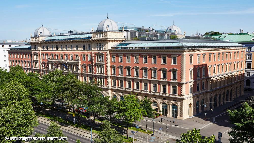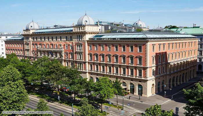 Le Palais Hansen Kempinski, établissement cinq étoiles classé au patrimoine, est situé à Schottenring, sur le célèbre boulevard Ring. Construit à l‘origine comme un hôtel pour l‘Exposition universelle en 1873, ce bâtiment séduit par son design contemporain, son architecture moderne et son luxe. Le Palais Hansen Kempinski dispose de 152 chambres et suites, deux restaurants, deux bars, un salon à cigares, sept salles de conférence, une salle de bal, un magasin de fleurs ainsi que le Kempinski Spa de style ottoman.