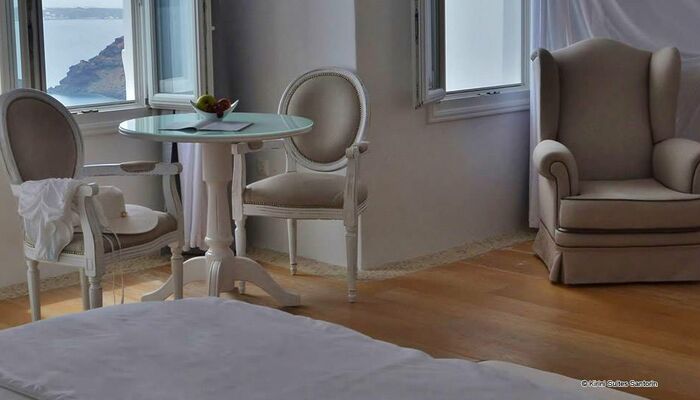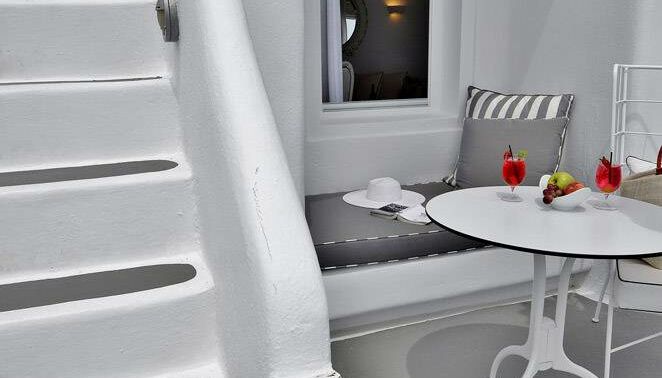 Le chic empreint de fraîcheur d’un design contemporain, le luxe de ses Jacuzzi intérieurs, les vues féeriques de la Caldera, combinés aux chambres luxueuses, à l’élégance de la pièce à vivre, à de merveilleuses salles de bains avec baignoire ou douche, ainsi que la véranda privée surplombant la mer, font de ses Suites une expérience à vivre une fois dans sa vie.