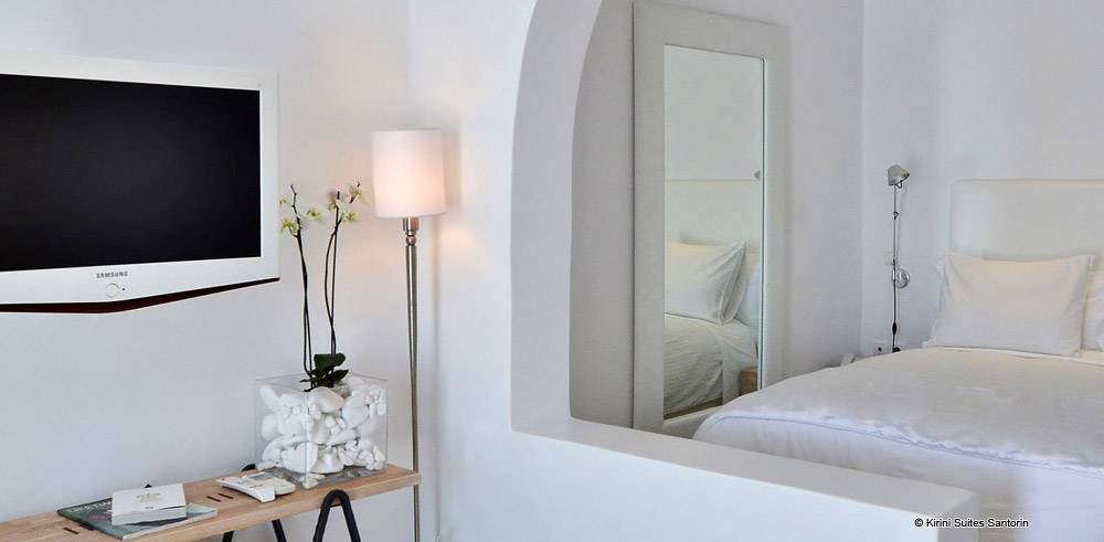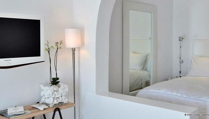 L’hôtel Kirini et Spa fait prendre au mot luxe une toute autre dimension, offrant à ses visiteurs une atmosphère de rêve idyllique, et des suites qui dépassent l’imagination. Les suites troglodytes, surplombant la Caldera, rénovées et décorées récemment dans des tons de blanc cassé, ont un style épuré incarnant le caractère chic et unique d’une boutique-hôtel.