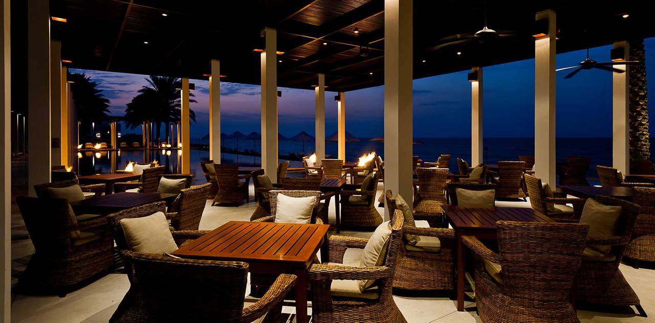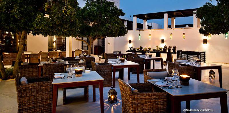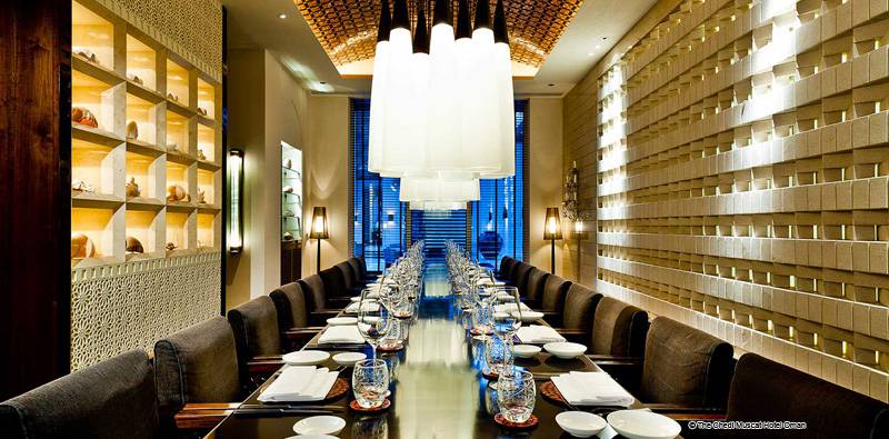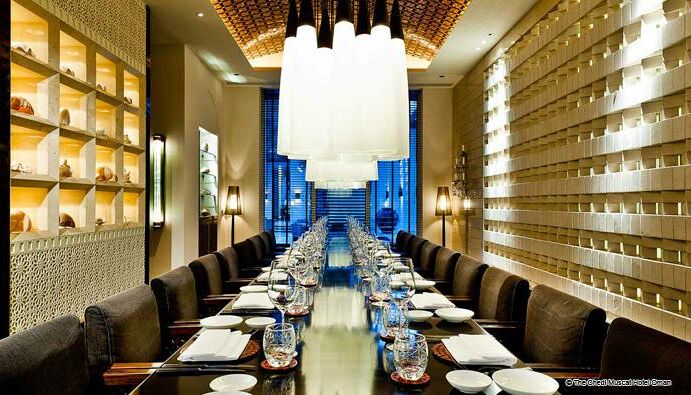Six restaurants et deux salons au Chedi Muscat couvrent les grandes cuisines et les meilleurs vins du monde, de la Méditerranée au Moyen-Orient, en passant par l’Asie du Sud-Est et l’Inde. Élégamment conçu par Yasuhiro Koichi, designer d'intérieur japonais renommé du Design Studio SPIN, le restaurant associe des intérieurs asiatiques épurés à des détails architecturaux omanais distinctifs.