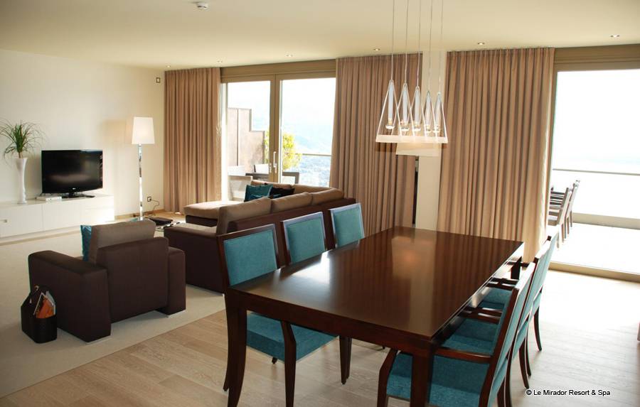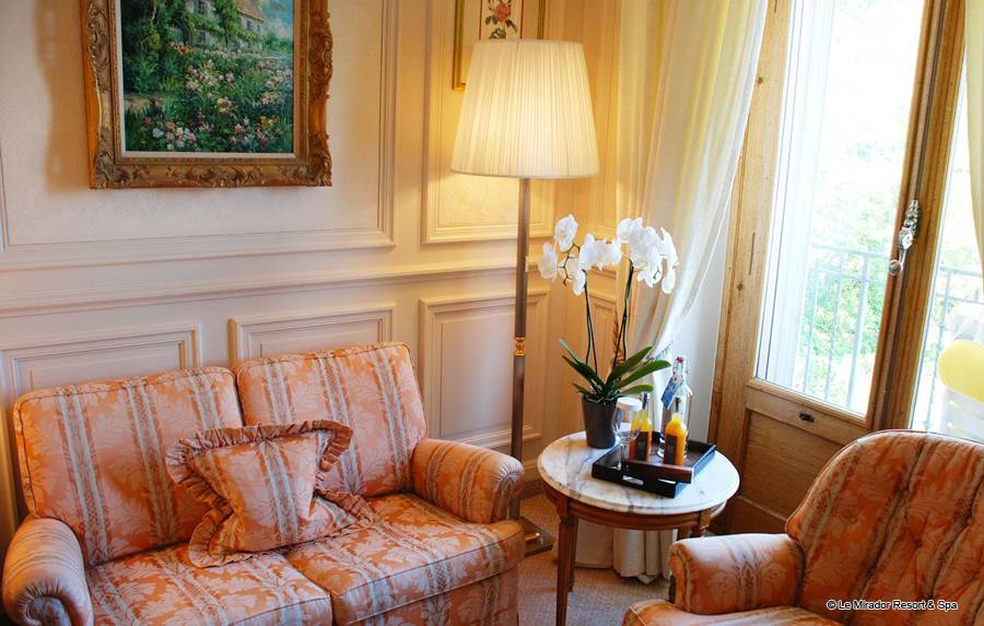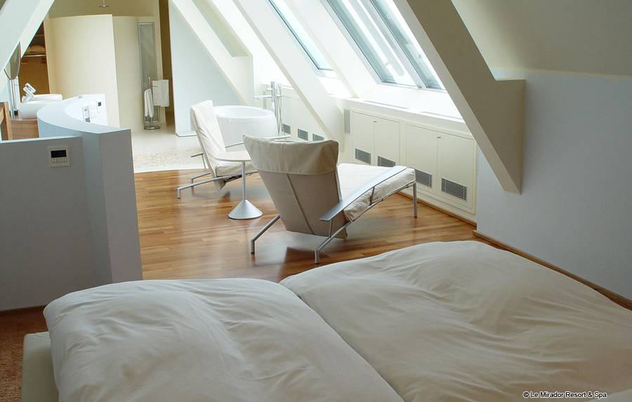 Après avoir profité d’un bain à remous dans l’une des spacieuses salles de bain de votre suite, vous profitez de la vue panoramique qu’offre Le Mirador Resort & Spa sur les monts environnants et le lac Léman. Comme dans un appartement, la cuisine vous permet de préparer un déjeuner à partir des produits de la région ramenés de votre excursion au centre du pittoresque village de Gruyère. Lors d'un dîner entre amis dans votre jardin d’hiver, vous vous régalez d’un menu concocté par le Chef de notre restaurant, tout en admirant la vue de cette chambre de luxe sur la ligne d’horizon formée par les montagnes, immuables depuis des siècles, un bouquet de fleurs fraiches posé sur votre table. Vous ne perdez pas une miette du spectacle offert par cet endroit hors du temps.