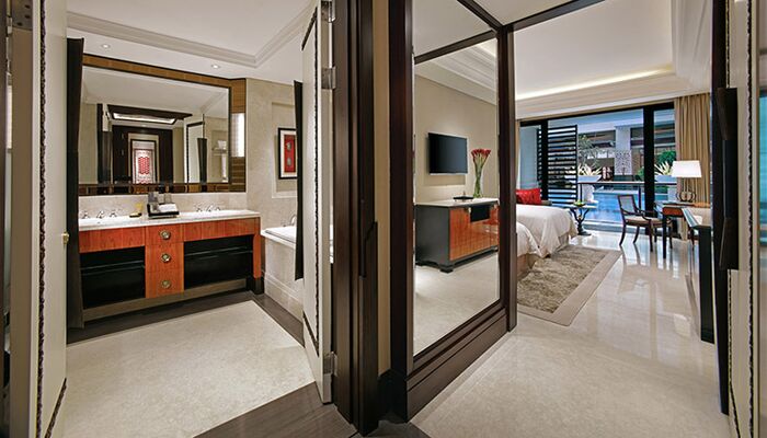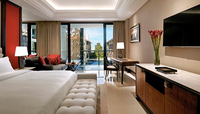 Pour une expérience VIP irréprochable, passez à une chambre Premier Club de 65 m² et bénéficiez d`un accès aux privilèges spéciaux. Découvrez l`ultime escapade dans une chambre luxueuse dotée du meilleur design balinais contemporain et d`un grand balcon avec méridienne et jacuzzi privé. Chaque chambre dispose d`un accès au service STAR à une touche qui garantit une assistance sans effort pour des tâches allant de la réservation au restaurant, au repassage des vêtements, etc. Profitez d`un bain romantique tout en profitant de la piscine de plage de sable blanc, de l`imposante cascade et du jardin tropical qui complèteront le paysage idyllique de votre chambre.