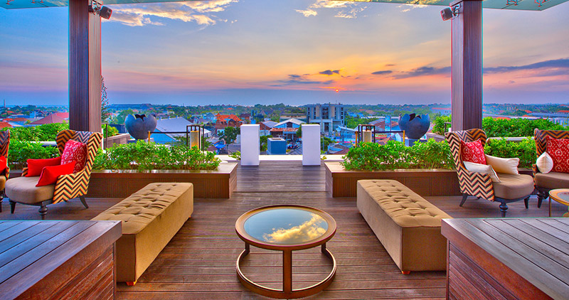 Bali Best Kept Secret à Seminyak, The 18th Rooftop Bar, un bar sur le toit en plein air nouvellement élégant avec vue sur le coucher de soleil sur le monument de Seminyak, qui devient rapidement un favori parmi les globe-trotters pour son cadre enchanteur, ses tapas et ses cocktails exclusifs.