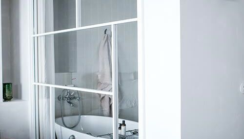 Elle est unique, avec sa très grande terrasse, très moderne, dans les tons de bordeaux profonds et d`ivoire. Meubles, tissus et murs, tout est dans le détail et s`embellit d`un simple filet de couleur: En plus toilette séparée, double lavabo, baignoire avec douche.