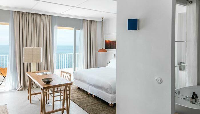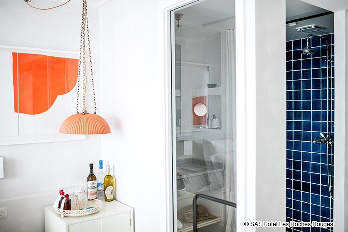 Qu`elle soit en hauteur, avec une vue dégagée ou bien, dans une ambiance plus maritime, à deux pas à peine des flots, comme un peu en croisière, un peu sur une île, précédée des hublots du couloir marine taillé dans la roche, cette chambre vous transporte déjà au large…
