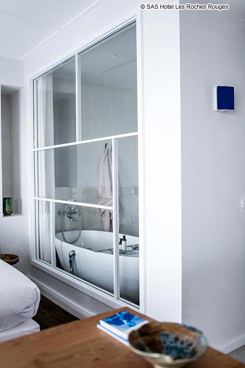 A 30 minutes de St-Tropez, à l`écart du tumulte du monde, dans sa calanque de rêve, l`hôtel, ses 38 chambres et suites, ses jardins exotiques, est à l`image d`un véritable paradis entre ciel et mer. Magie intacte de l`un des derniers endroits mythiques de la Côte d`Azur : l`hôtel Les Roches poursuit sa croisière immobile, avec au bas des plus belles pages du livre de bord les signatures prestigieuses d`Humphrey Bogart, Christian Dior, Churchill, Cocteau, Sagan…
