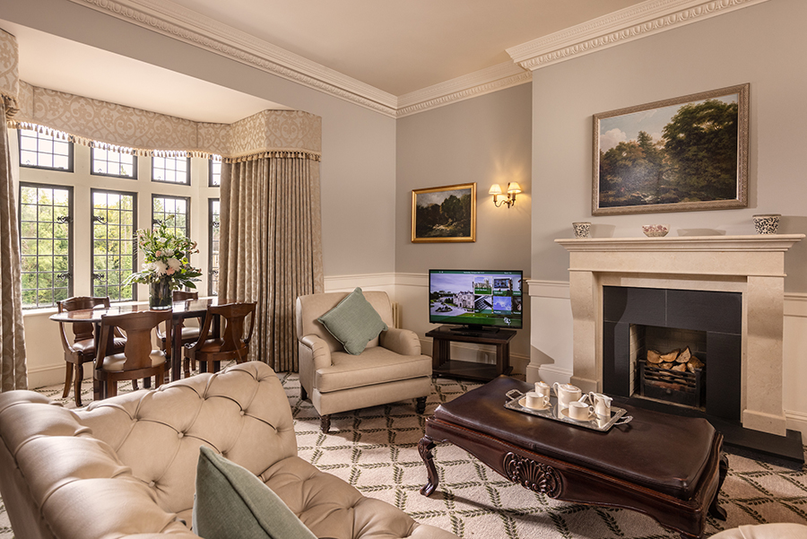 Les salles de bains privatives comprennent une baignoire sur pattes argentées, du carrelage en marbre, une vasque double, un dessus en granit et des compartiments séparés pour la douche et la toilette. Le vaste salon de la suite présidentielle est baigné de lumière naturelle par les fenêtres en plomb d`origine de ce château historique qui surplombe deux aspects du domaine. Un mini-bar, des rafraîchissements, des peignoirs de luxe et des chaussons sont fournis.