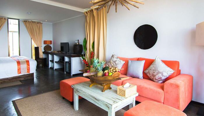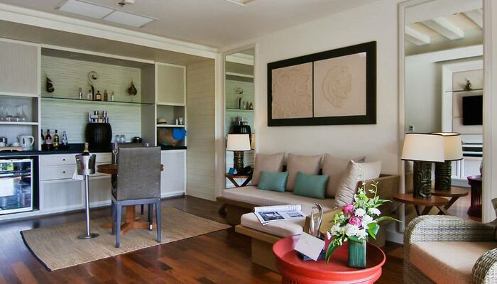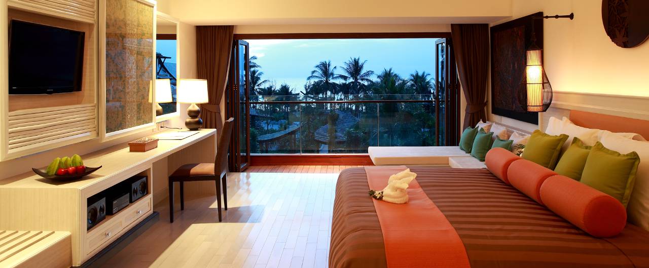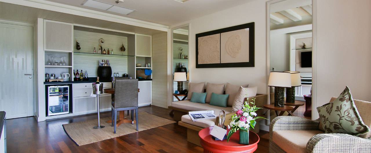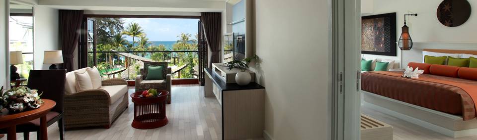 Nos 4 Deluxe Suites de Phanga Nga, en Thaïlande, disposent d‘un espace de 81 mètres carrés et disposent de deux chambres avec salle de bains, d‘un salon spacieux avec une TV LED de 40 pouces et un lecteur DVD, un balcon privé avec Vue imprenable sur la mer, mini-cuisine avec réfrigérateur et cafetière / théière.