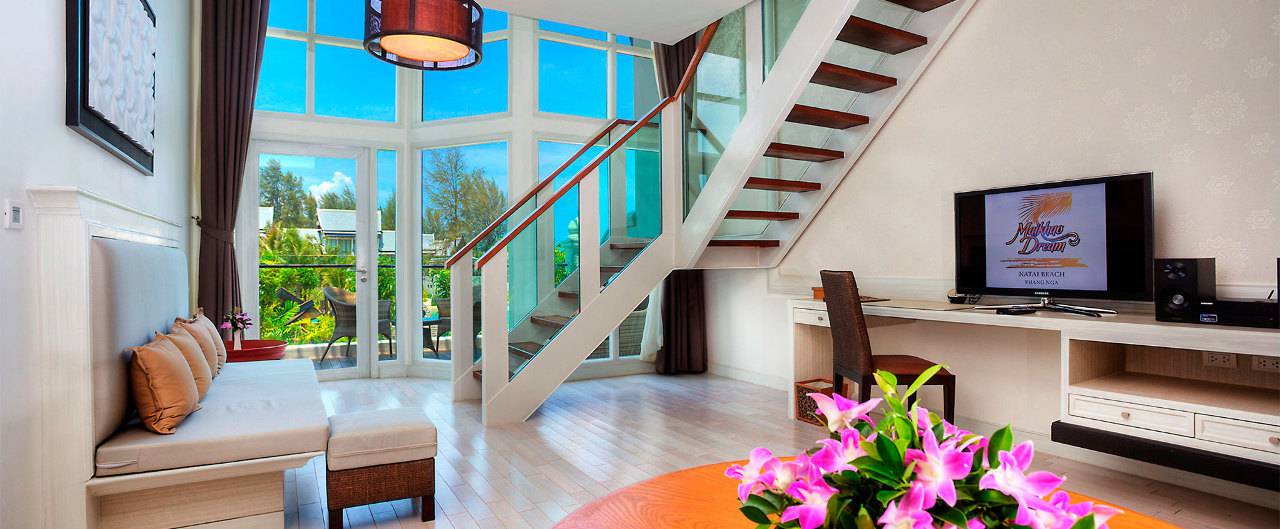 BIENVENUE A MAIKHAO DREAM RESORT ET SPA NATAI, PHANG NGA. Maikhao Dream Resort & Spa, Natai, Phang Nga est un complexe de luxe intime de 56 chambres situé sur les rives dorées de sable de Natai Beach, Phang Nga. Situé sur les beaux sables d‘or de Natai Beach, le Natai Beach Resort & Spa est un complexe exquis de 106 chambres. À 25 minutes en voiture de l‘aéroport de Phuket, la station est basée sur le patrimoine local et la culture thaïlandaise traditionnelle. C‘est un havre de vacances idéal pour créer un confort et une détente, un lieu idéal pour les familles et les jeunes mariés.