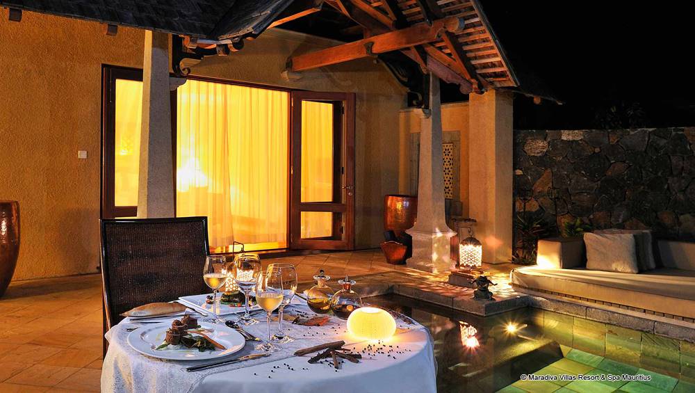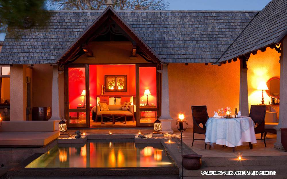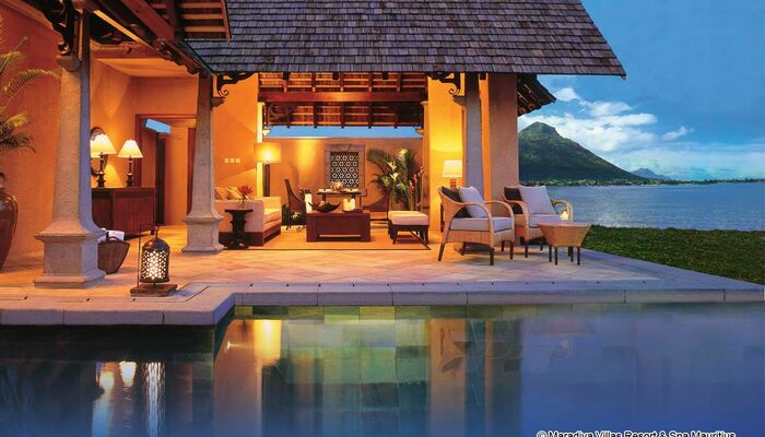 Situé sur la côte ouest de l‘île Maurice bordant une plage de 750 m, Maradiva Villas Resort & Spa allie luxe et raffinement dans une atmosphère de détente absolue. Inspiré par le riche héritage culturel indien, cet hôtel cinq étoiles de luxe s‘étend sur plus de 10 hectares de végétation luxuriante. L’hôtel est idéalement situé sur la côte ouest de l‘île Maurice, bénéficiant d’incroyables couchers de soleil et d’un climat sec et doux, tout au long de l’année. Surplombant la Baie de Tamarin, s’étendant sur 750 m de plage, Maradiva comprend 65 villas de luxe, deux restaurants et bars, piscine à débordement, centre sportif, mini club, club nautique et un spa unique. Les étendues de plages dorées longeant l‘hôtel sont ombragées par endroits de grands, arbres qui s’y trouvaient bien avant que l’hôtel soit construit.