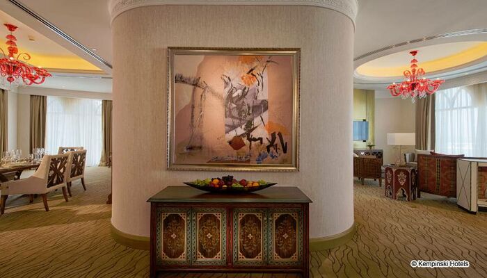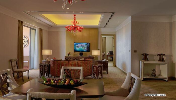 En arrivant à Marsa Malaz Kempinski, vous êtes prêt pour une expérience inoubliable au moment où vous traversez la porte. L‘opulence et la grandeur combinées à des vues à couper le souffle sur le golfe azur d‘azur, vous descendront dans un autre monde de détente et de sérénité. Permettre au majordère de servir votre choix de rafraîchissements, soit dans votre salon de luxe spacieux, soit dans votre terrasse privée. Rafraîchissez-vous dans votre salle de bain primorement aménagée dans la splendeur du nouveau monde, ou profitez d‘un bain parfumé pendant que vous respirez la vraie signification d‘une suite somptueuse.