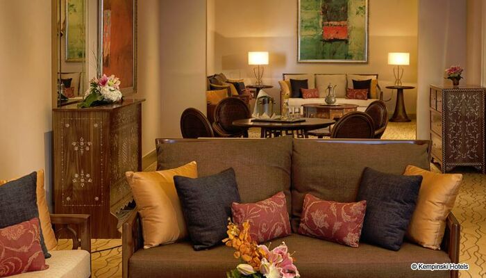 Marsa Malaz Kempinski présente la plus belle architecture européenne, mélangée avec des éléments arabes traditionnels dans l‘ensemble de ses 281 chambres luxueuses - dont 69 suites, deux suites présidentielles et deux suites royales. Chaque chambre spacieuse offre la technologie la plus récente, avec un service personnalisé de votre majordome privé, qui répond à tous vos besoins les 24 heures par jour. Marsa Malaz Kempinski, The Pearl - Doha est situé sur sa propre île isolée, à quelques pas des nombreux restaurants et restaurants de Porto-Arabie et des quartiers Medina Centrale de The Pearl-Qatar. Le quartier central des affaires de West Bay se trouve à 10 minutes en voiture.