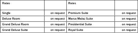 Les chambres de luxe sont conçues pour une détente et un confort inégalés. Chaque chambre dispose d‘un lit King ou d‘un lit jumeau ainsi que d‘un espace extérieur spacieux (balcon / terrasse) donnant sur les eaux azores entourant l‘île isolée de Marsa Malaz. La palette sereine de couleurs chaudes dans les tissus et les rembourrages crée un environnement relaxant et ambiant.