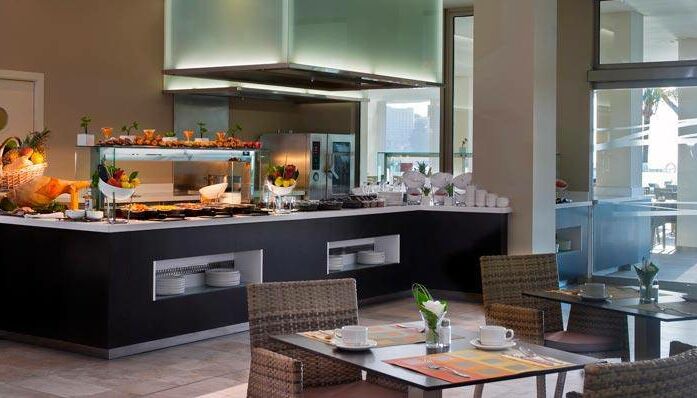 - Description: Buffet avec station de cuisson de spectacle. Découvrez des régions délicieuses avec des pâtisseries, des salades, de la viande, du poisson et des légumes frais de la plus haute qualité. Restaurant ouvert pour le petit déjeuner et le dîner