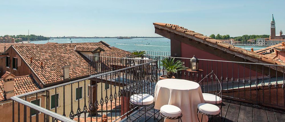 Elle est dotée d’une splendide “altana”, la typique terrasse en bois qui domine les toits et la Lagune faisant don d’une vue à couper le souffle.