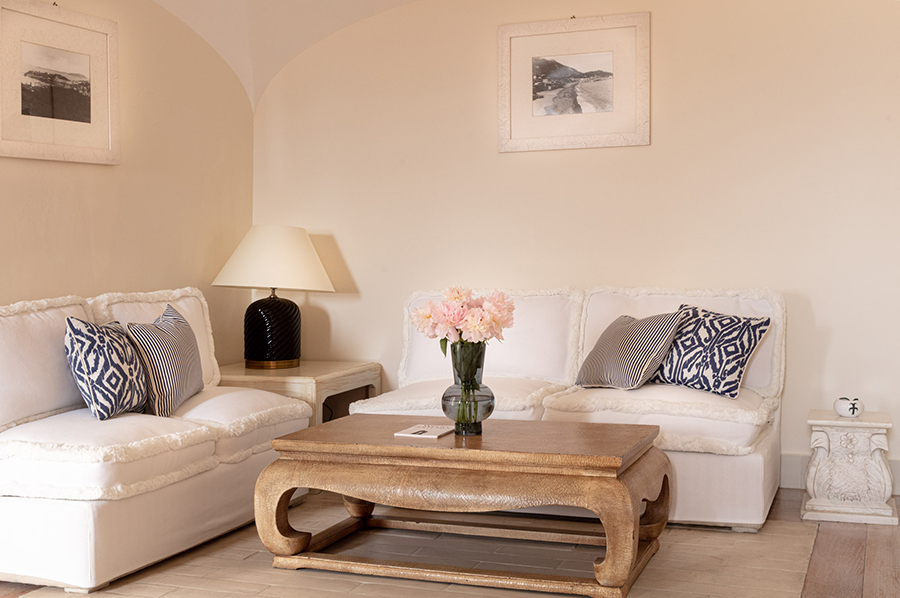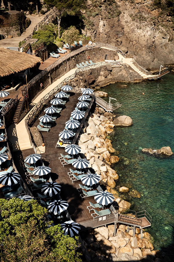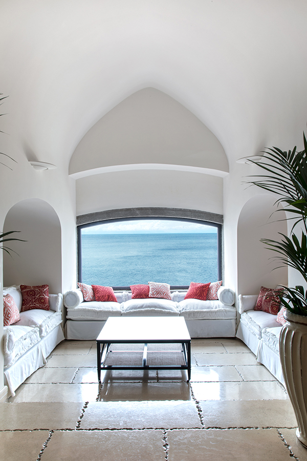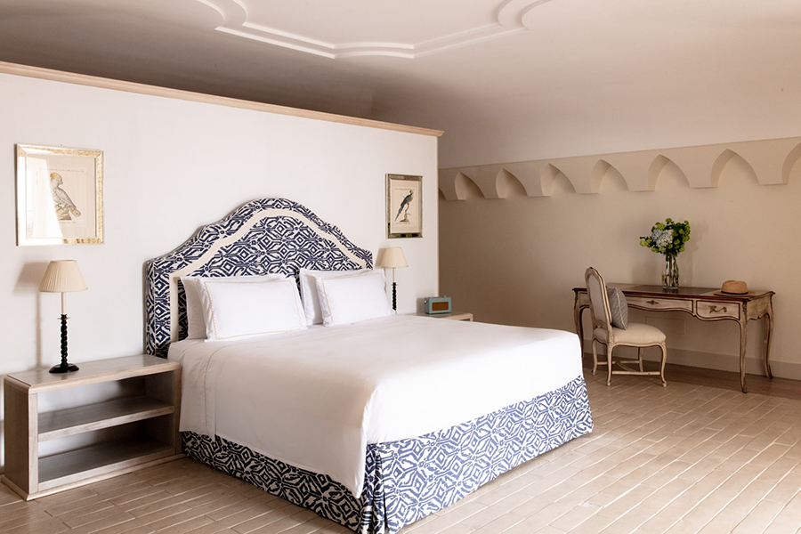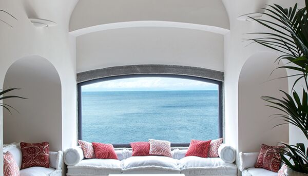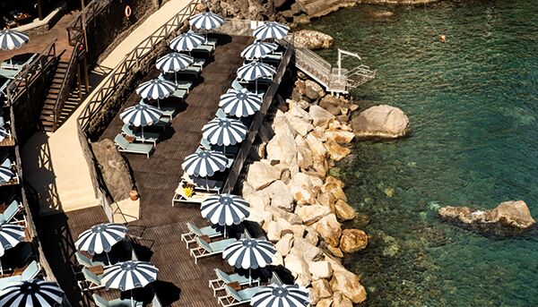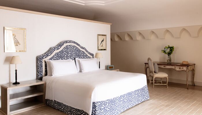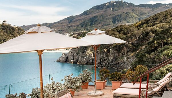 Terrasse avec Vue Mer et Bain à Remous, perchée sur une falaise surplombant la mer, la grande suite bénéficie d`une vue imprenable. Somptueuses draperies, murs peints en émail, sols clairs aux couleurs chaudes : tout participe à une atmosphère raffinée particulière à la Méditerranée. La Grande Suite est équipée de TV satellite avec écran LCD, DVD, home cinéma et iPod avec Bose Sound Station. La grande salle de bain avec baignoire jacuzzi et douche séparée, double lavabo, bidet, sèche-cheveux, téléphone et miroir de maquillage. Il est meublé selon les normes technologiques les plus élevées et présente des carreaux de mur et de sol coupés à la main. Il bénéficie d`une vue spectaculaire sur la baie de San Montano. La grande terrasse privée surplombant l`océan est équipée de chaises et d`un solarium et dispose également d`une mini-piscine jacuzzi.