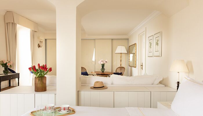 Fenêtre avec Vue Mer, face à la mer, située dans l`ancienne Tour du 16ème siècle. Un lit double. Chaque suite comprend un salon, une chambre et une salle de bains. La chambre est dotée d`une armoire, d`une télévision par satellite, d`un mini-bar, d`un bureau, d`un téléphone et d`un mobilier de style. Le salon est équipé d`un canapé-lit pour enfants. La salle de bain est dotée d`une baignoire jacuzzi, d`un lavabo en marbre, d`un bidet, d`un sèche-cheveux, d`un téléphone et d`un miroir de maquillage. Air conditionné. Coffre-fort dans la chambre.