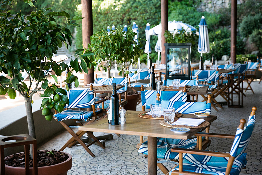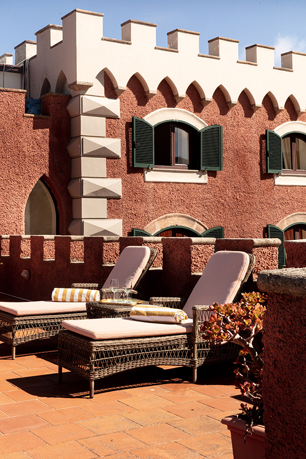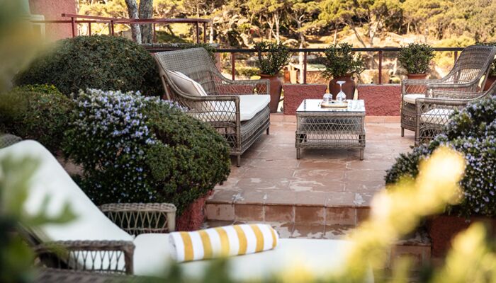 Terrasse avec vue mer - Bâtiments Serra & Foresteria, située dans le parc – Bâtiments Serra & Foresteria - avec vue mer et terrasse – Un lit double. Chaque chambre dispose de beaux meubles et couleurs, d`une armoire intégrée, d`une table et d`une console, de 2 téléphones (dont un dans la salle de bain), d`une télévision par satellite, d`un minibar, d`une salle de bain avec lavabo en marbre, bidet, baignoire, sèche-cheveux et miroir de maquillage. . Air conditionné. Coffre-fort dans la chambre.